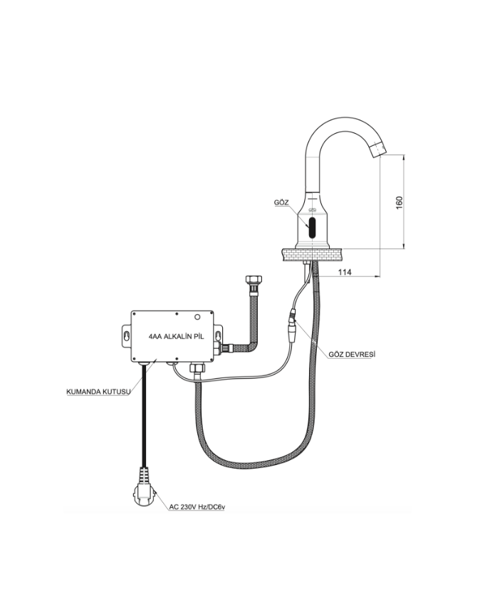 • AC ve DC desteği, AC kapatıldığında DC otomatik devreye girer. (AC 230V Hz / DC 6V)(4-AA Alkalin Pil)