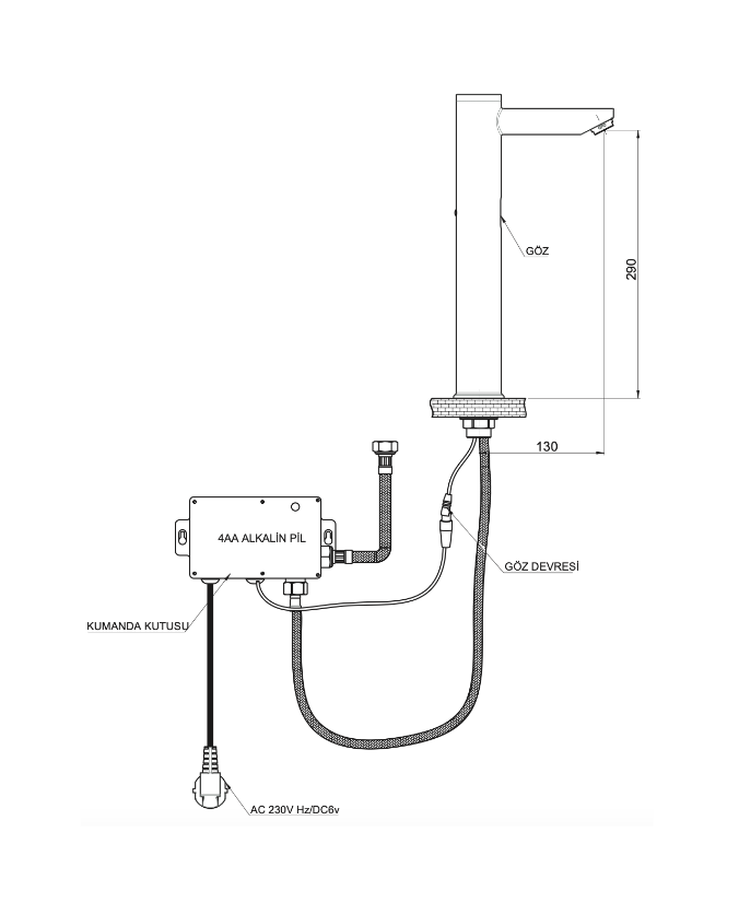 • AC ve DC desteği, AC kapatıldığında DC otomatik devreye girer. (AC 230V Hz / DC 6V)(4-AA Alkalin Pil)