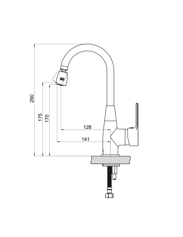 Çıkış ucu yüksekliği 170 mm - 175 mm